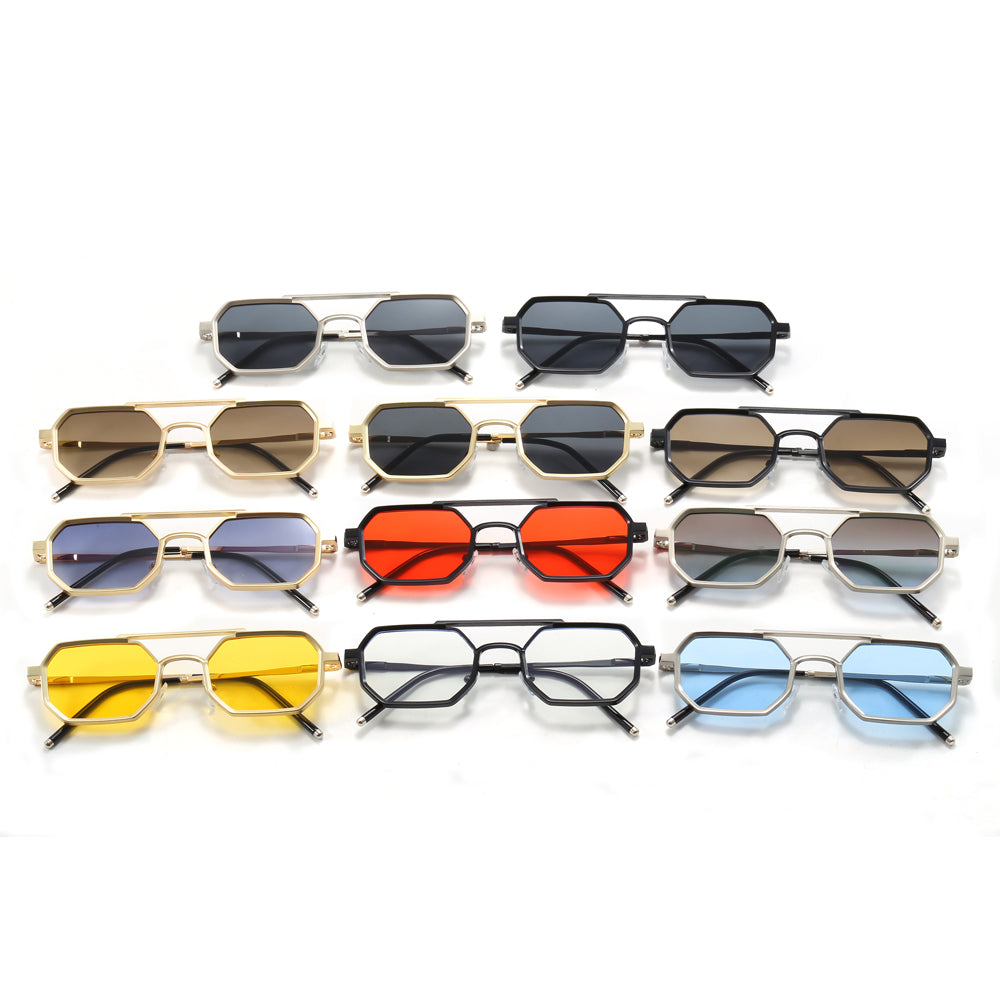 Polygon Double Bridges Top Bar Shades Metal Frame Sunglasses