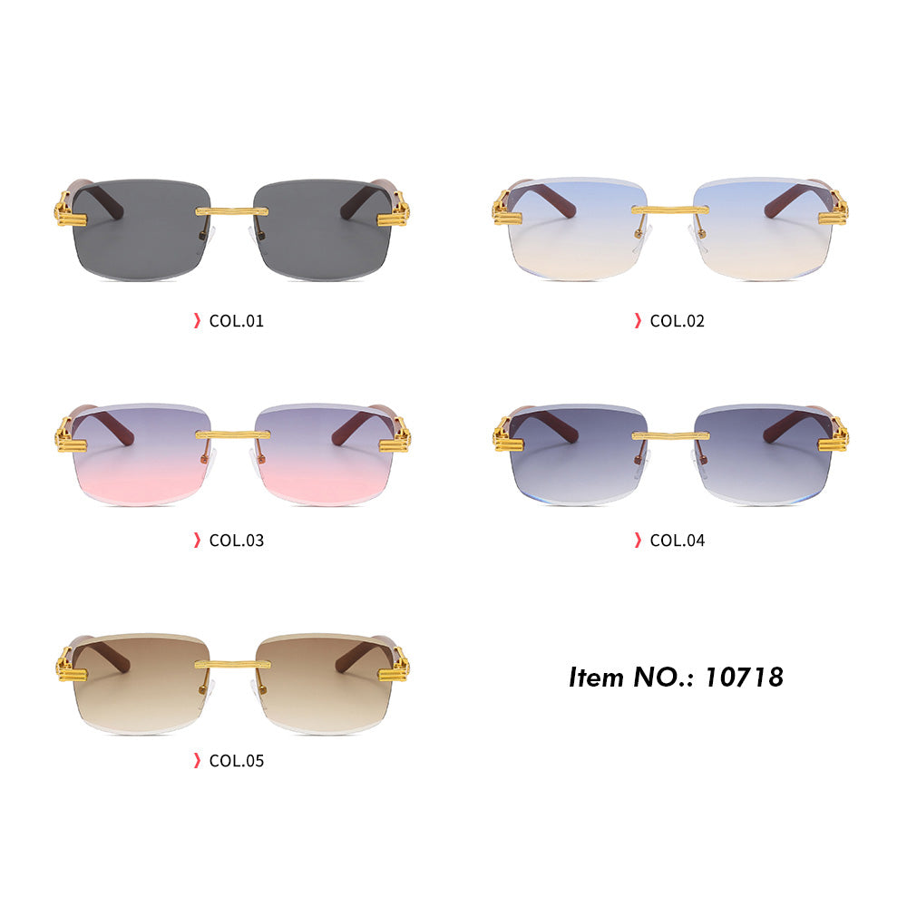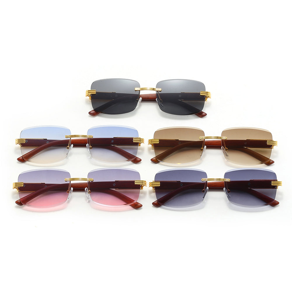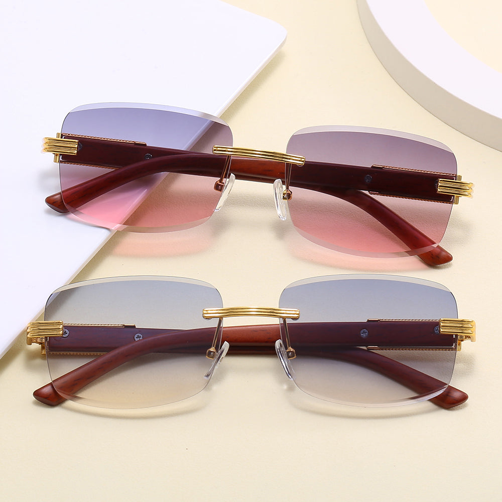 Rimless Rectangle Faux Wood Temple Sunglasses